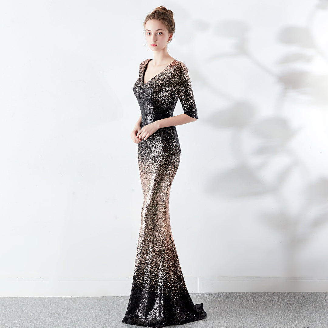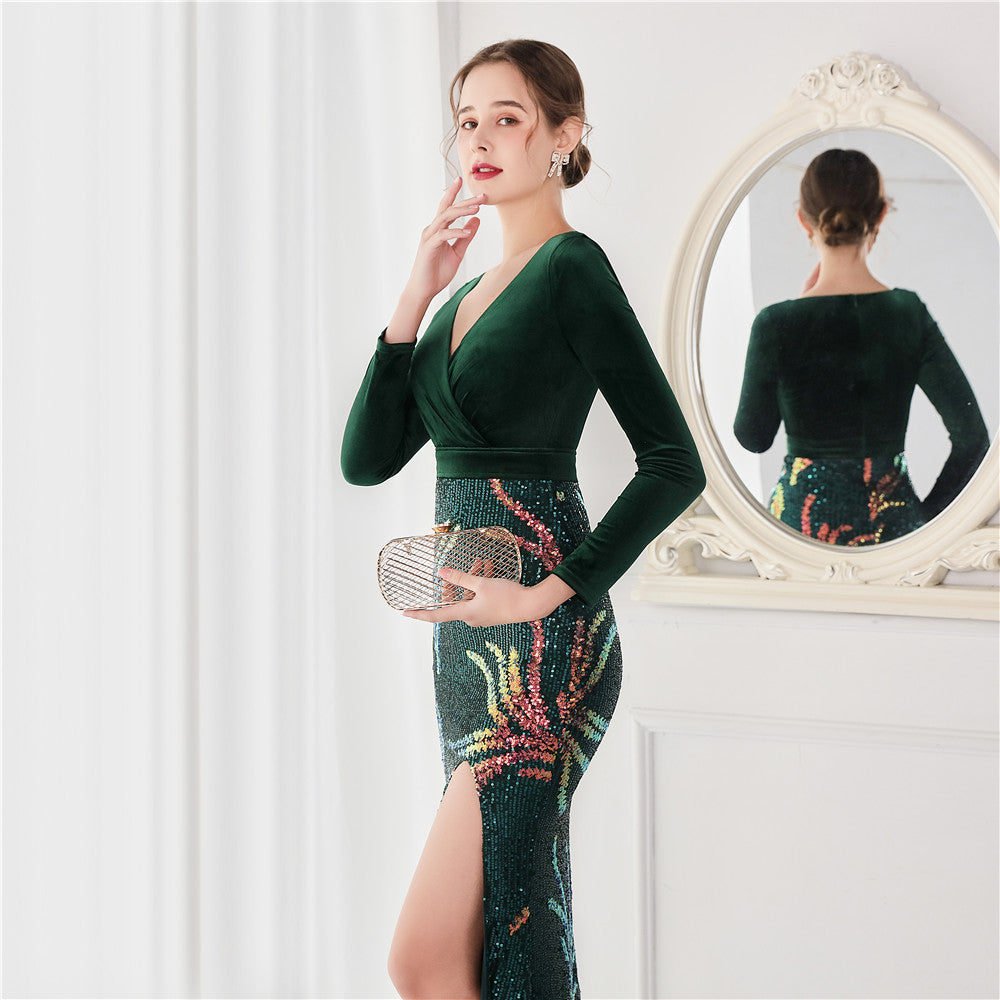 The dress falls to a fishtail maxi with a slim silhouette. A V-neckline with long sleeves and sequins at the split skirt define the look. Features Sequin details Fishtail hem Maxi length Slim fit Long sleeves Fabric & Care Polyester drapes smoothly with a...- £82.00 GBP