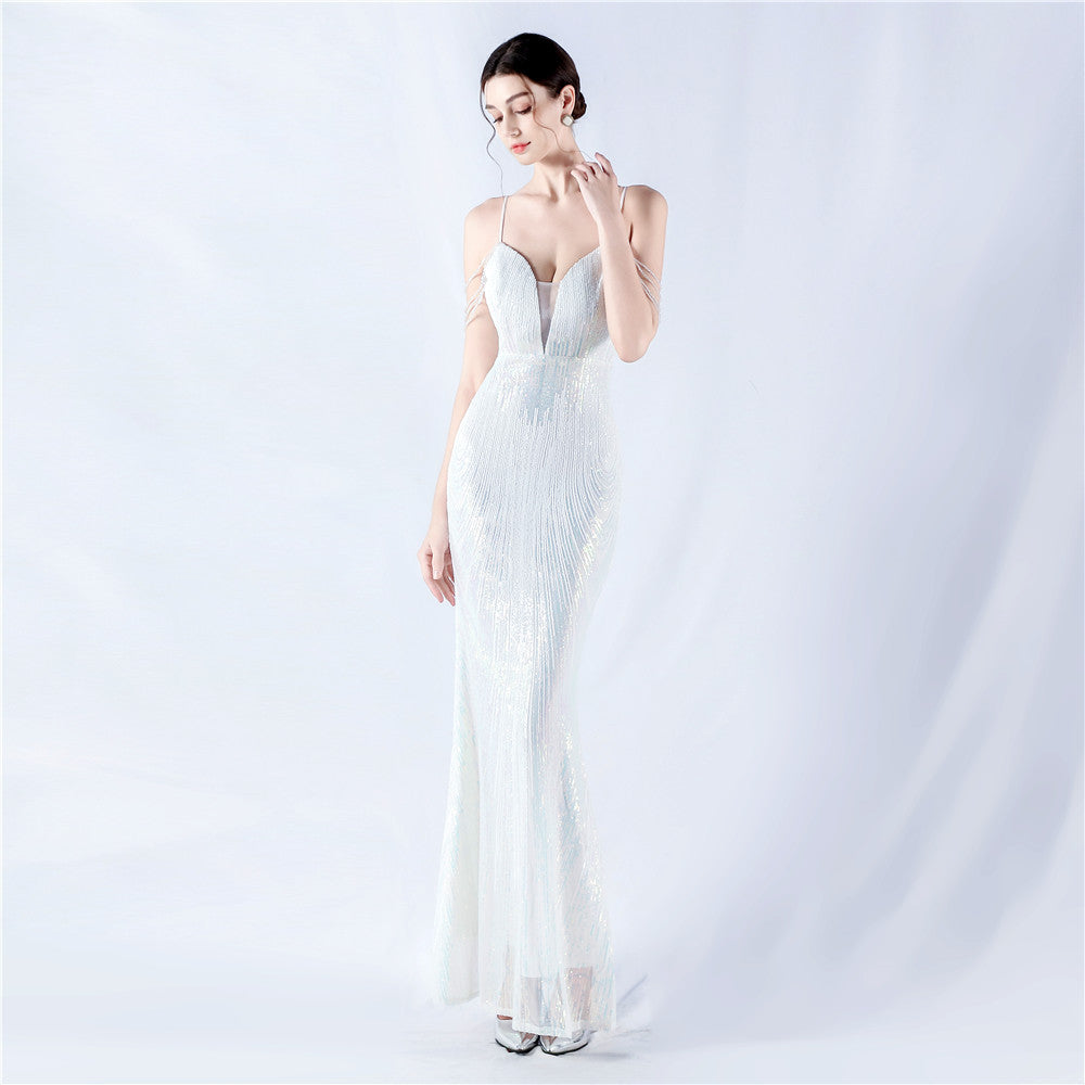Asymmetric One-Shoulder Sequined Maxi Dress