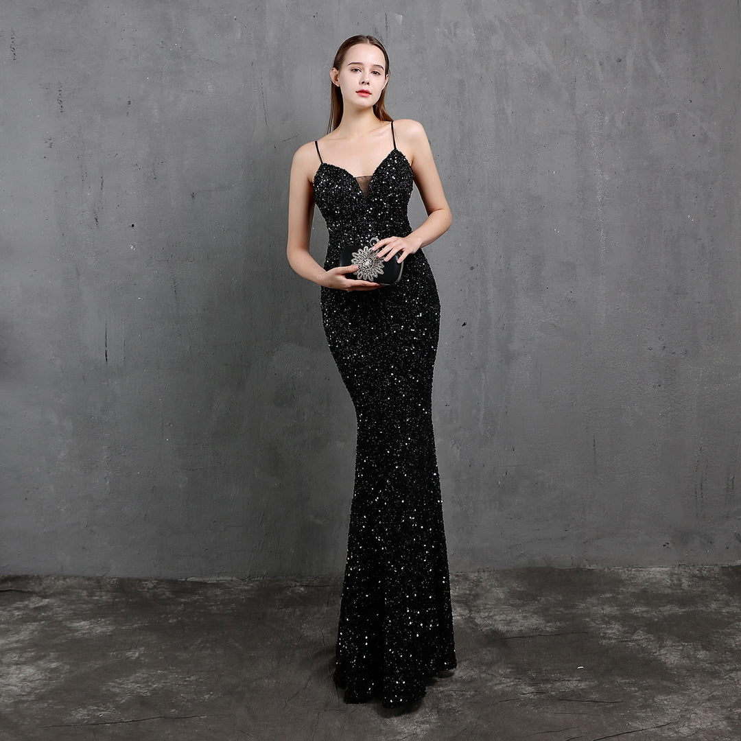 V-Neck Fishtail Sequin Maxi Dress