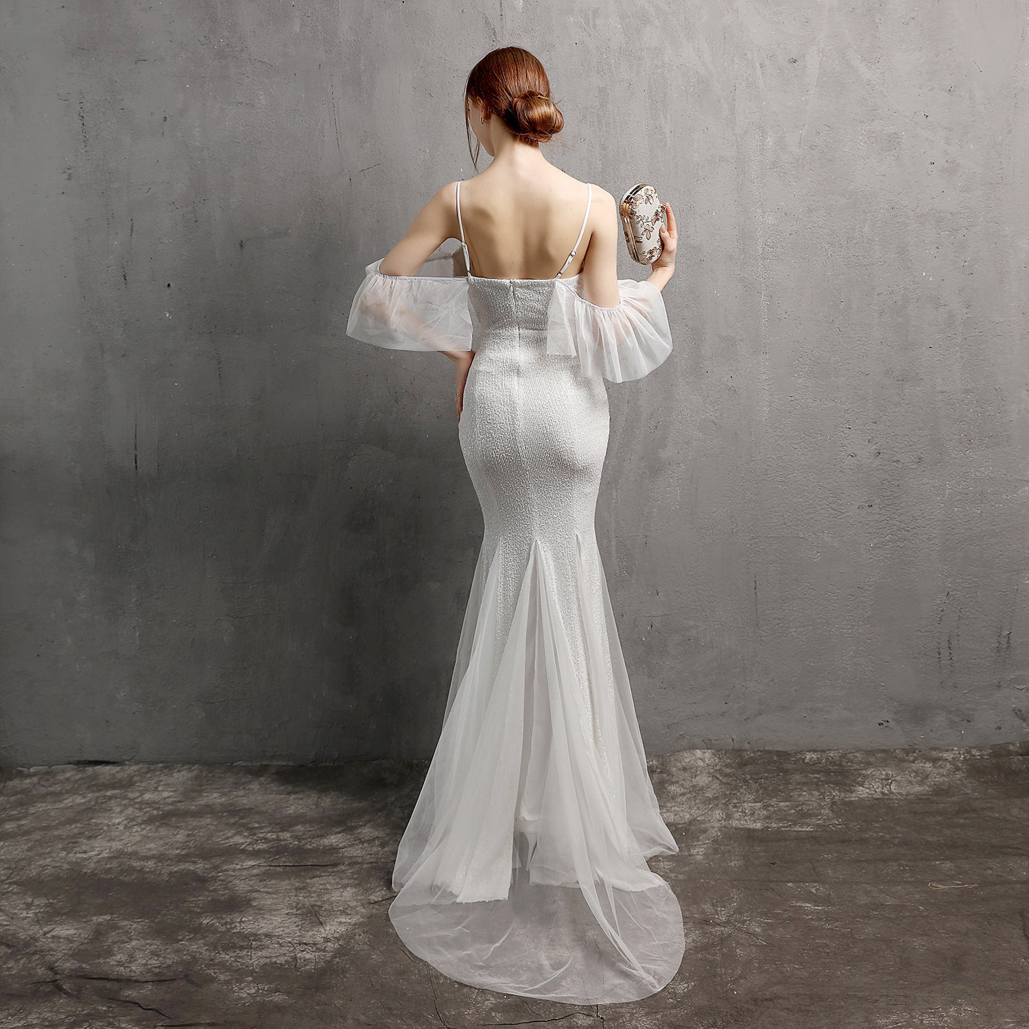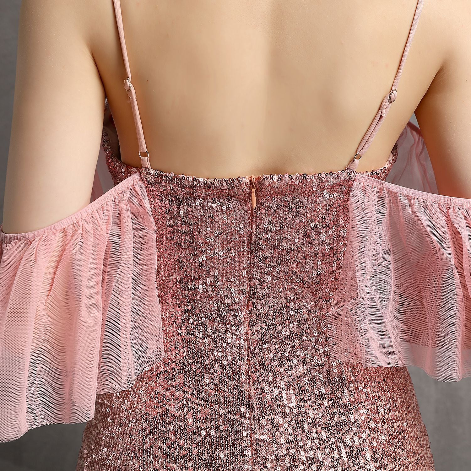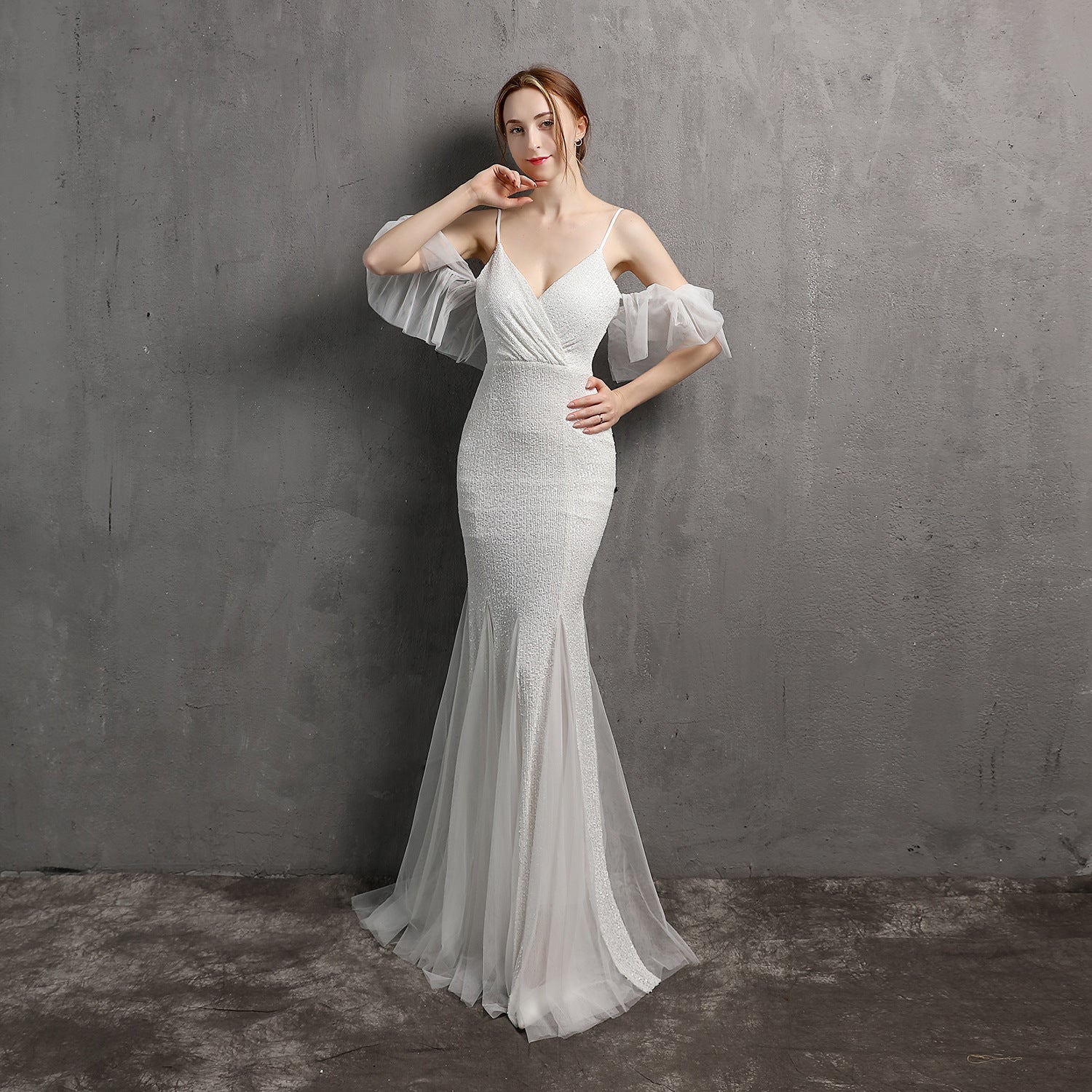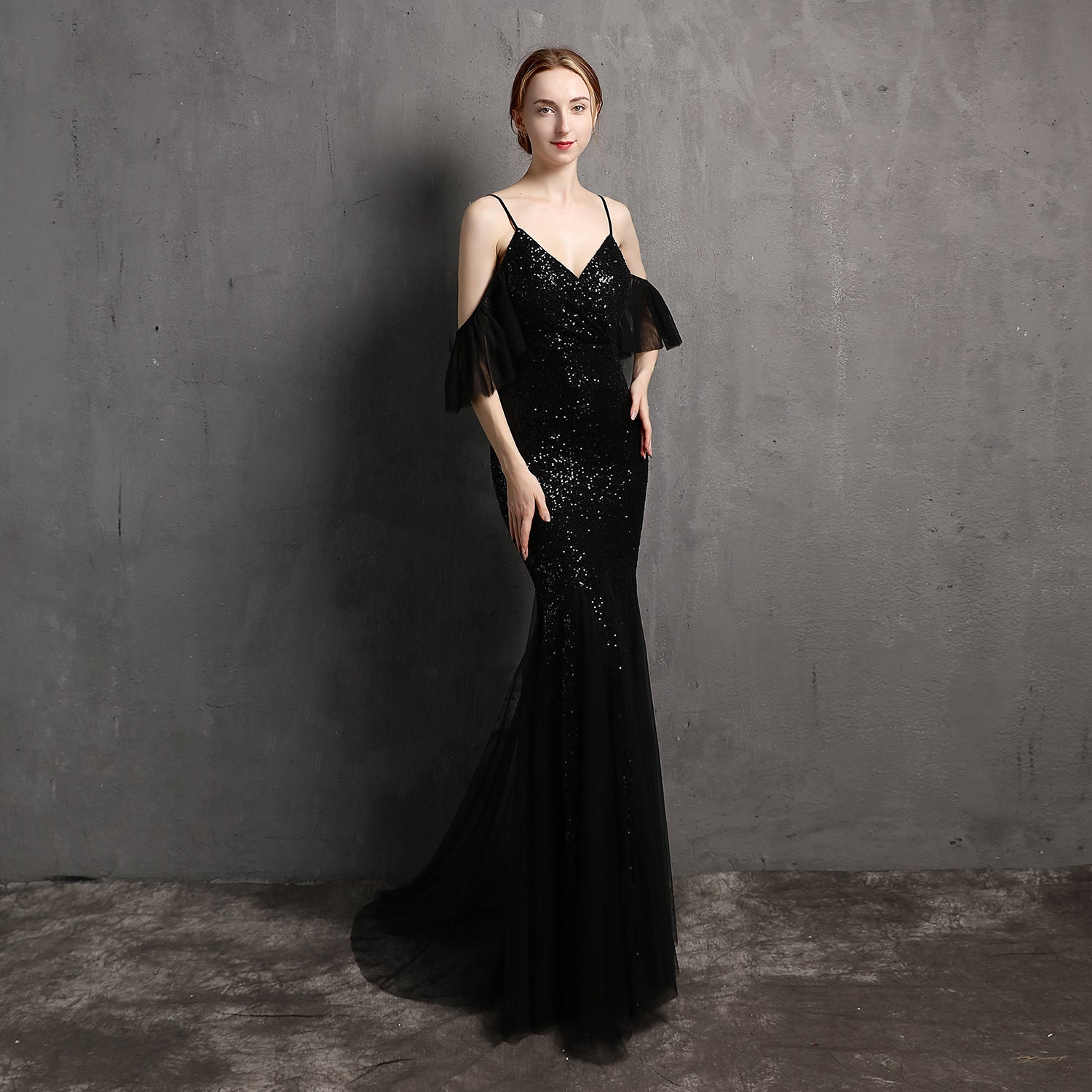 An elegant sequin maxi with a slim silhouette. The V-neckline and fishtail detail are accented by sequins for subtle shine.