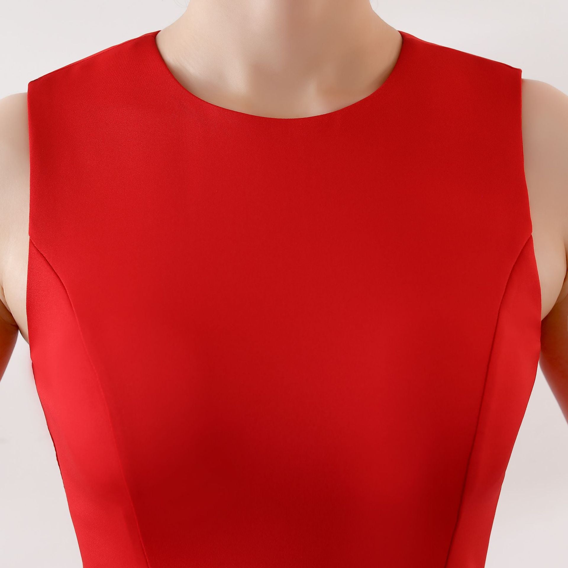 A sleeveless maxi with a slim, mermaid silhouette. The crew neckline and defined fishtail lend a quiet, formal edge.