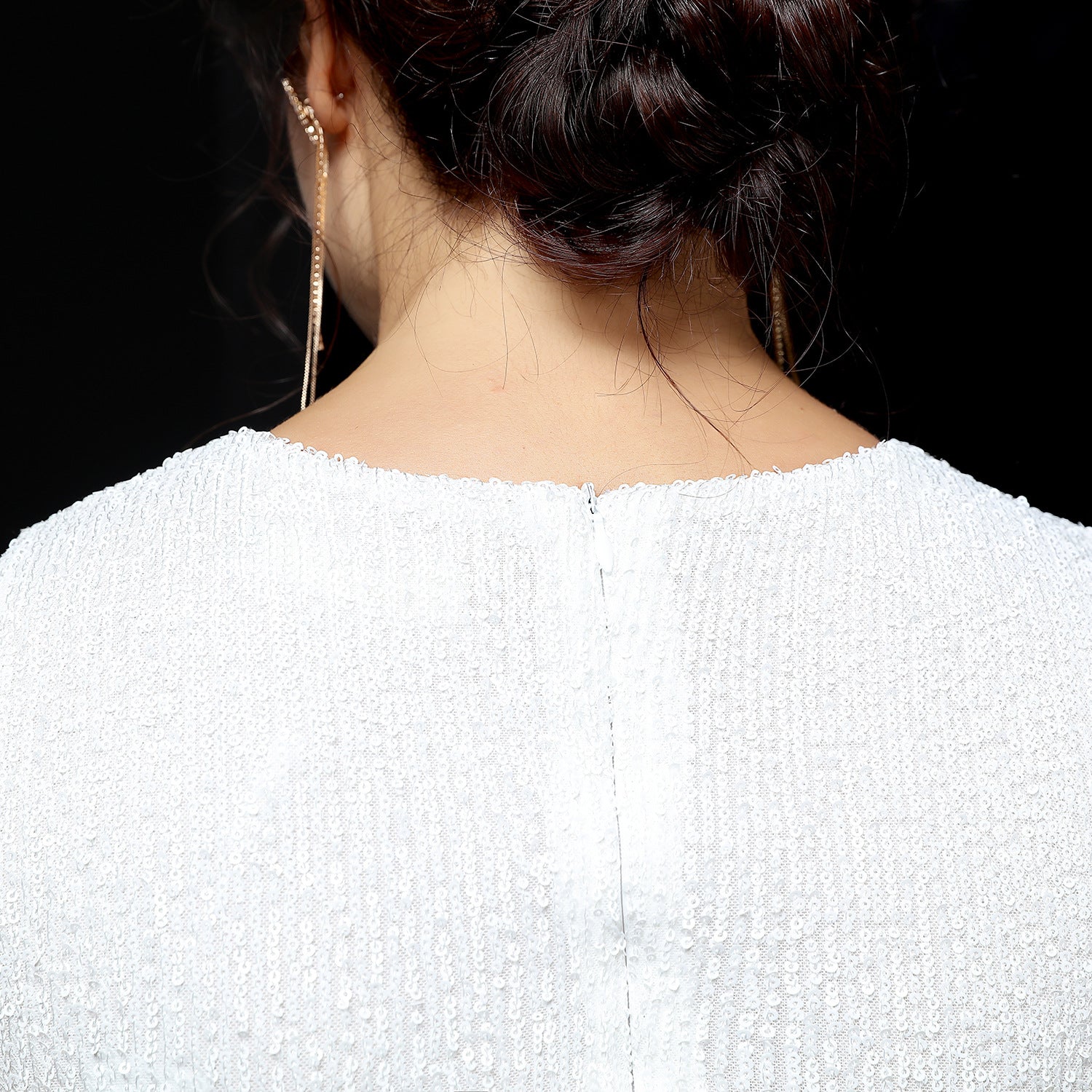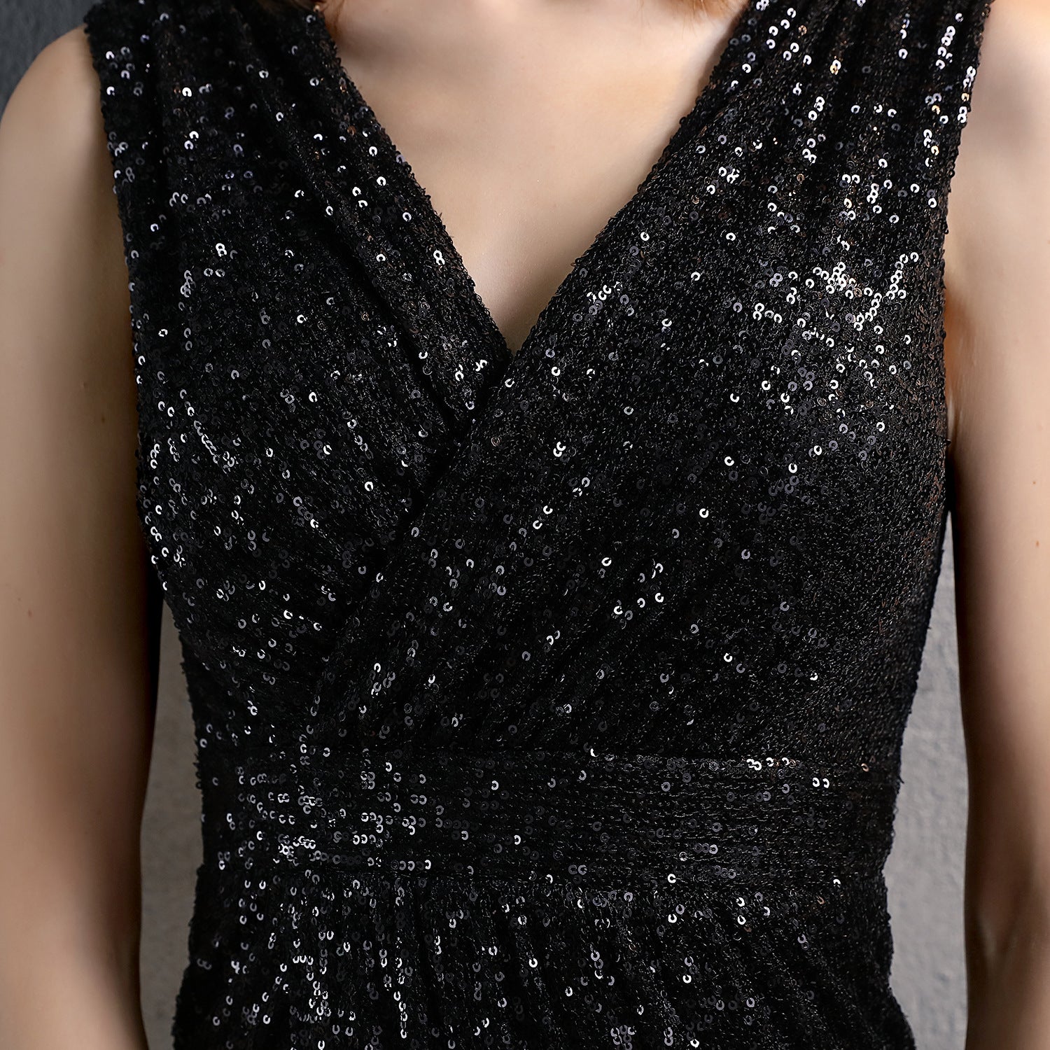 This Sequin Split A-Line Dress sits slim through the body and opens into a clean A-line skirt. The V-neck and a split define the silhouette with sequin embellishment.